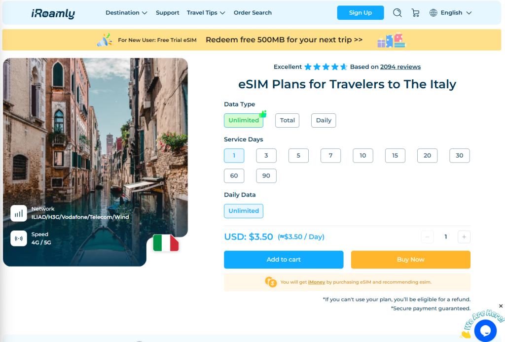 According to iRoamly’s site, the Italy-only eSIM begins from as low as US$0.60.